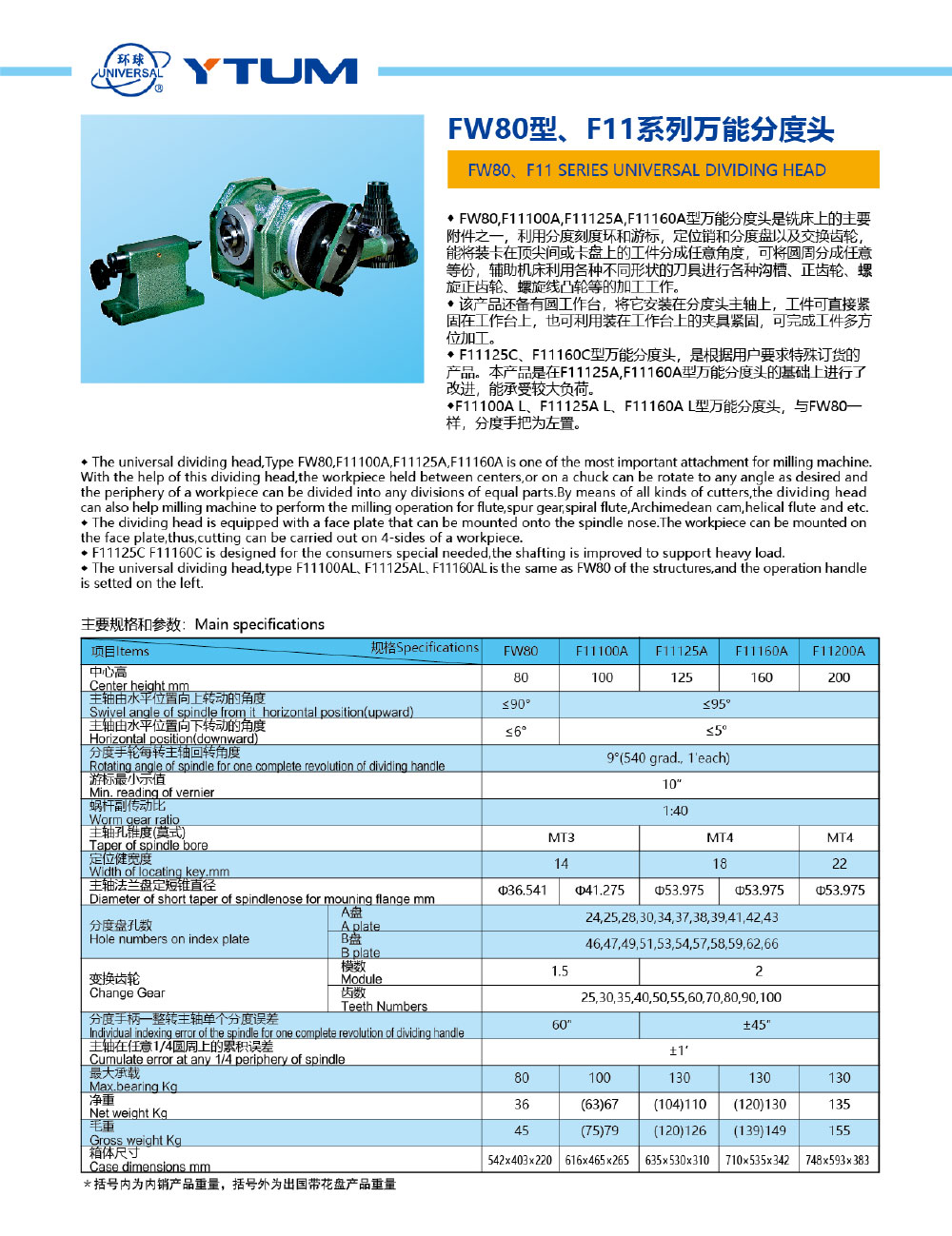 FW80型F11系列萬能分度頭